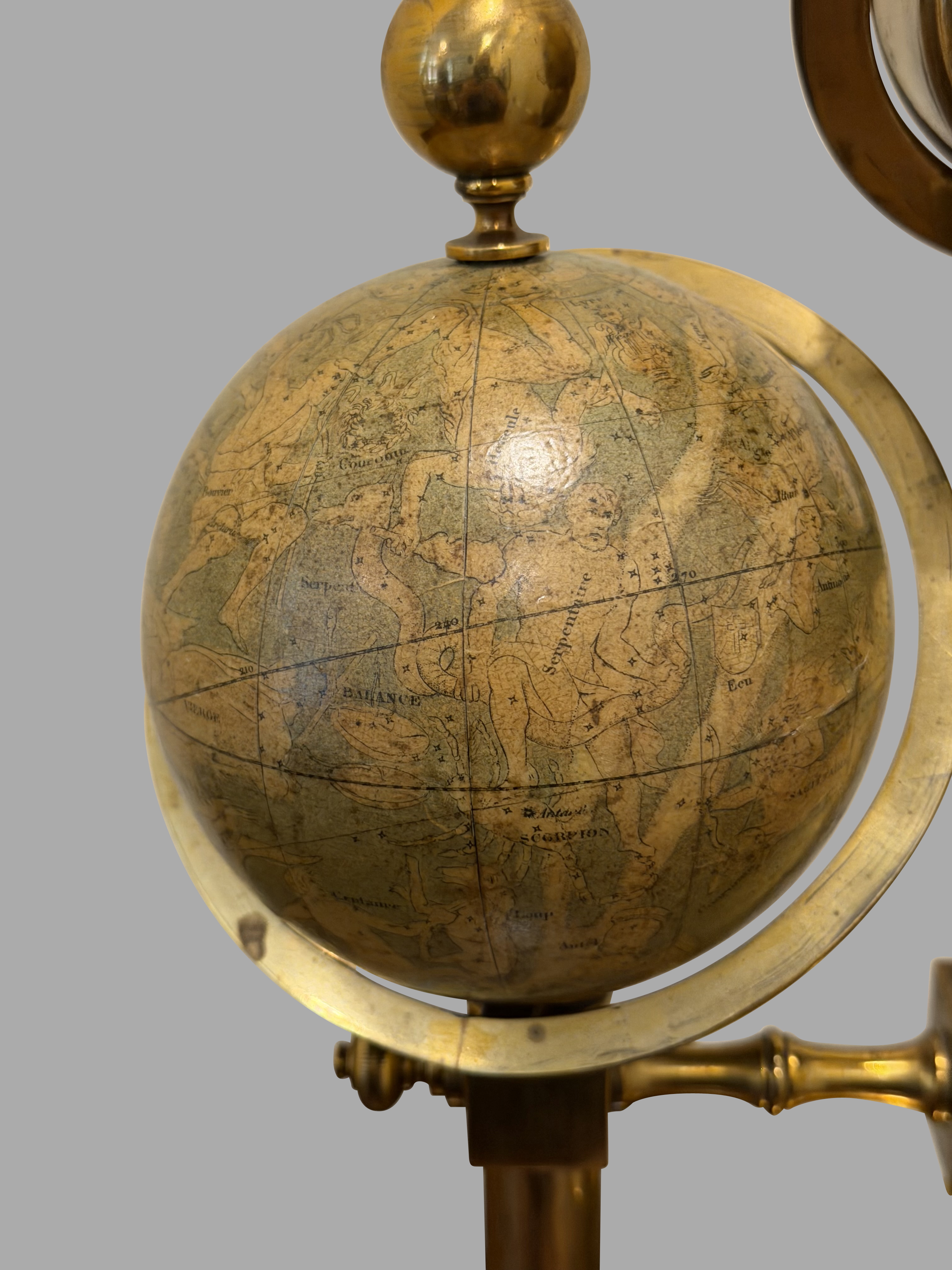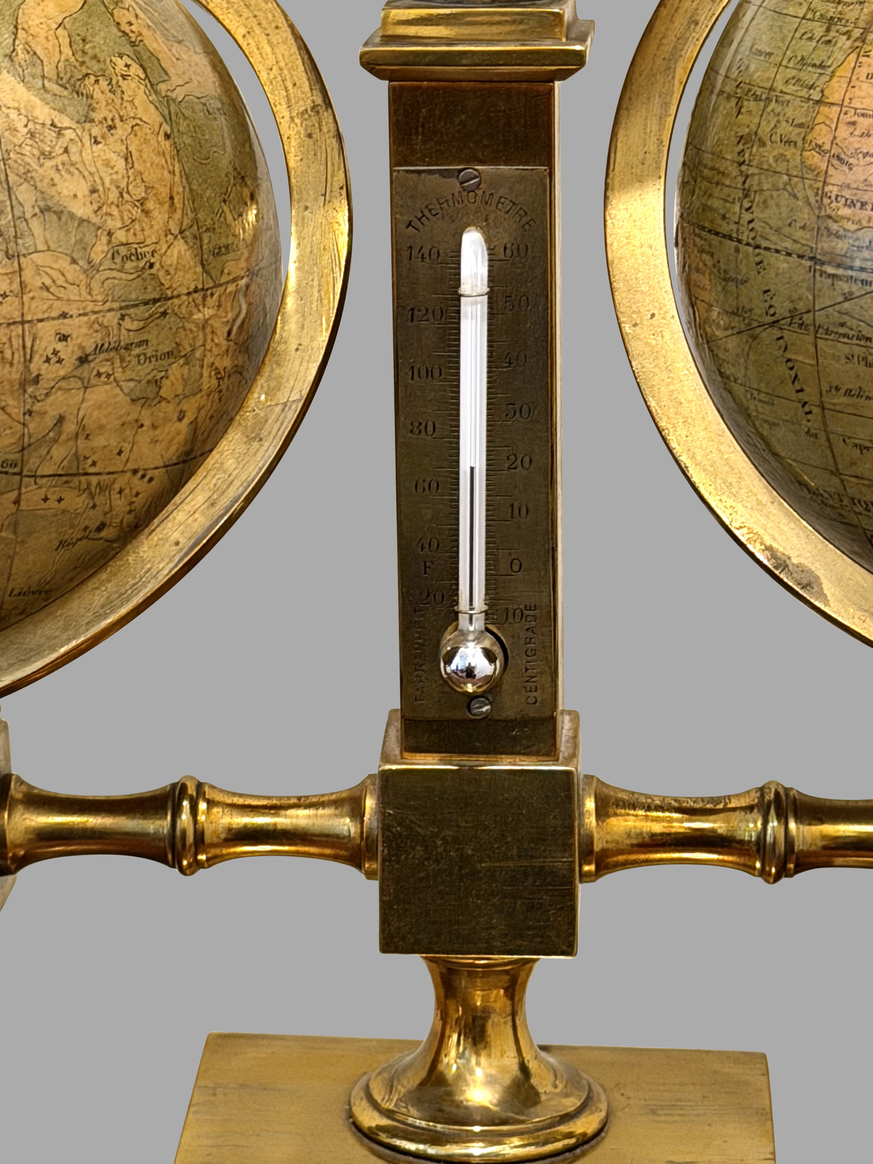 FRENCH 19TH CENTURY TERRESTRIAL AND CELESTIAL BRASS MOUNTED GLOBE COMPENDIUM