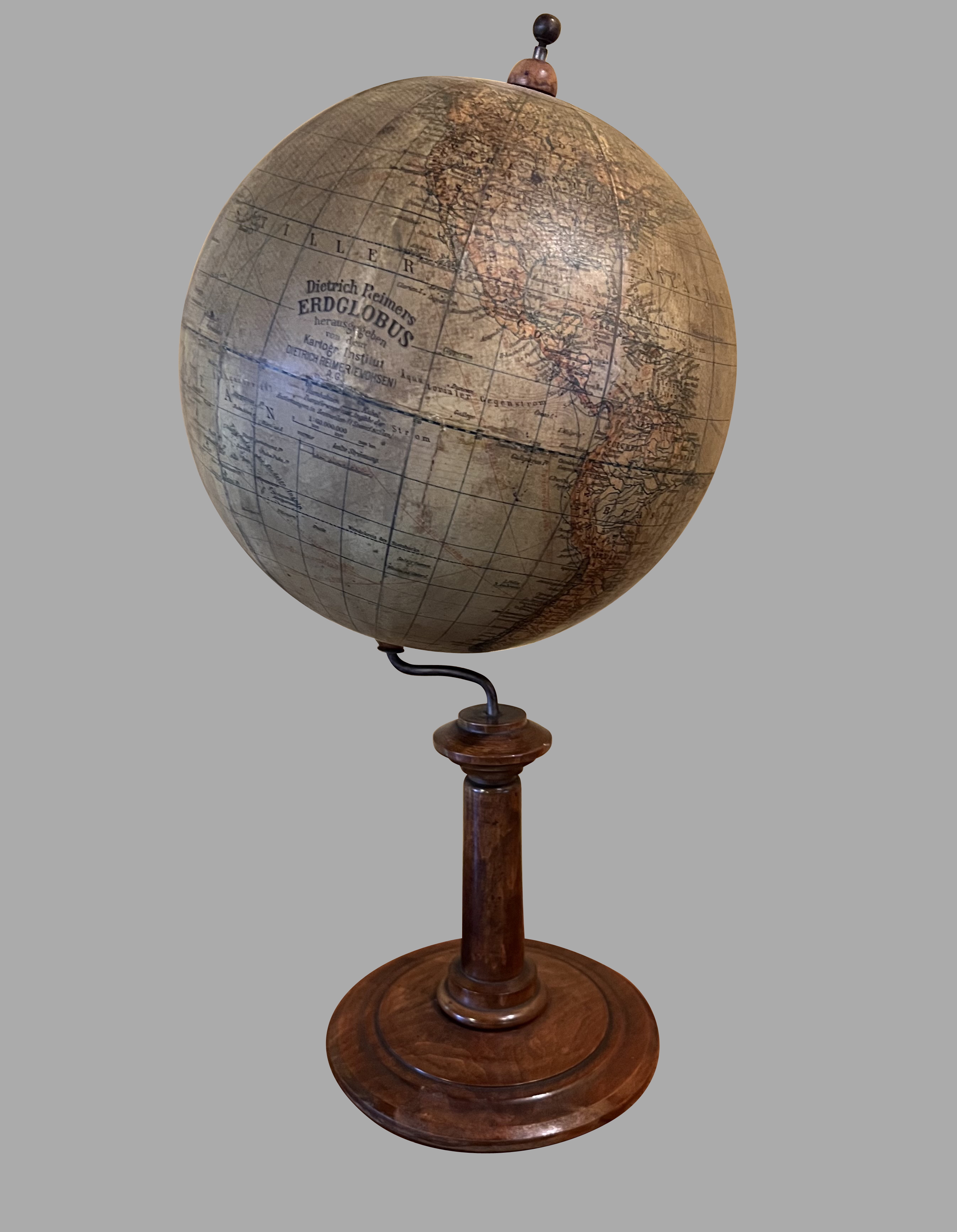 Dietrich Reimer was a significant German globe manufacturer in the late 19th to early 20th centuries whose work was renowned for its highly detailed political and physical maps which showed features lke ocean currents, trade routes and sea telegraph cables. This example is in good antique condition.