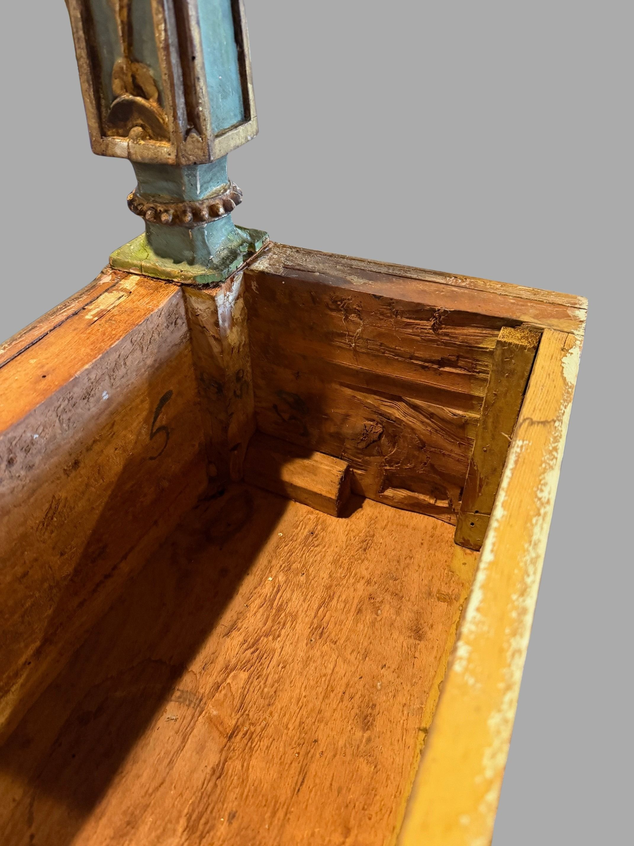 ITALIAN NEOCLASSICAL AQUAMARINE AND GOLD PAINTED CONSOLE TABLE WITH FAUX MARBLE TOP