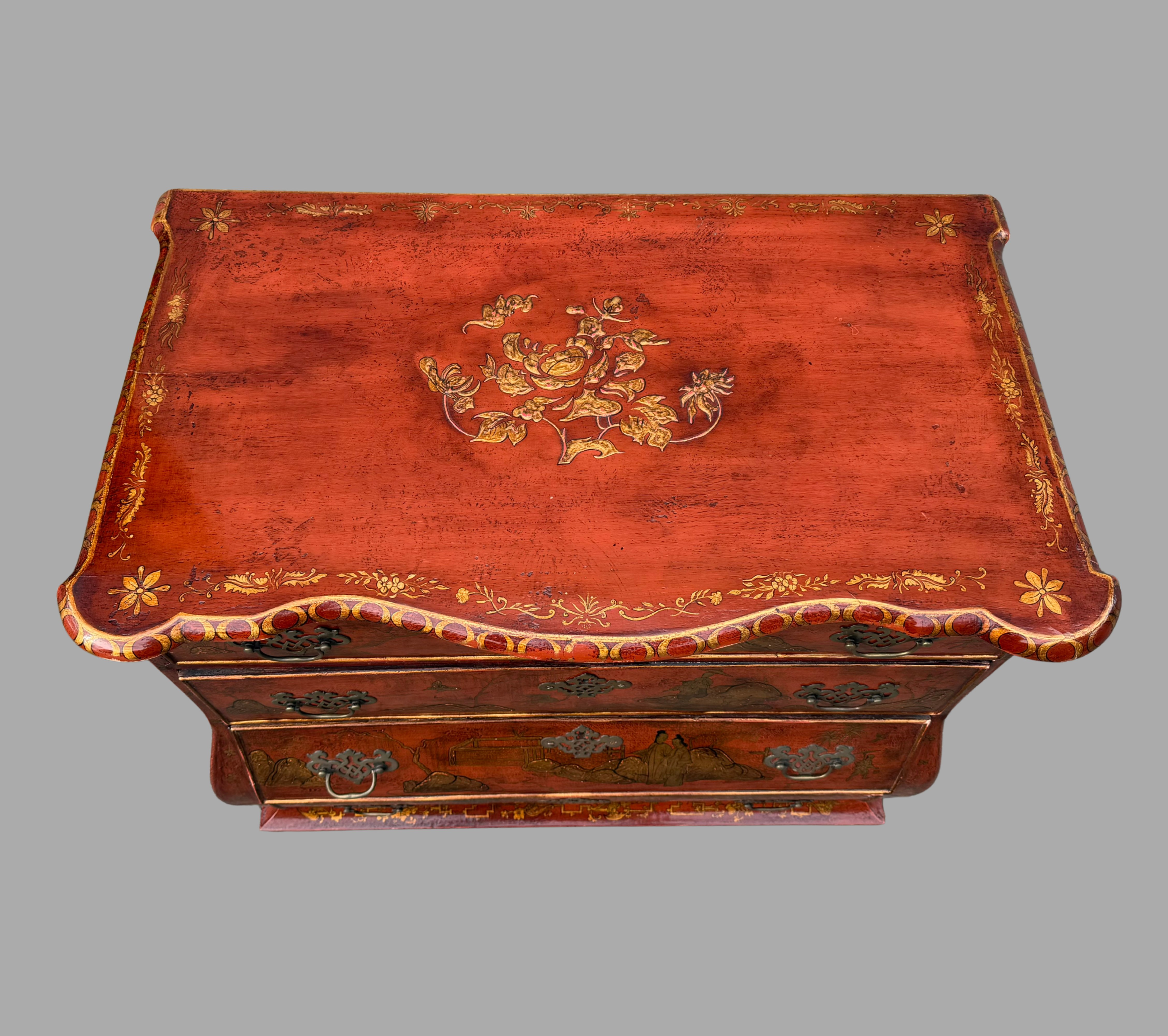 SCARLET JAPANNED ANGLO-DUTCH CHEST OF DRAWERS